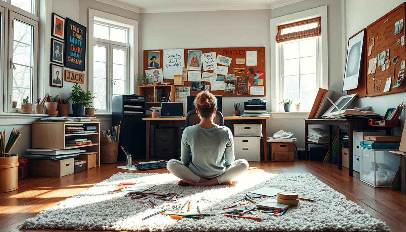 Even small spaces can be creative hubs. Use shelves for supplies and change your decor to spark new ideas. Tools like noise-canceling headphones or apps for focus can help balance technology and calm. Don’t forget the importance of good lighting—it improves mood and clarity.