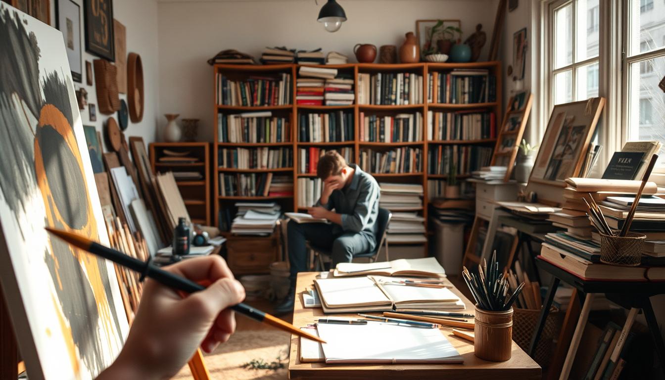 Your journey is full of is in every stroke or word. Many artists, like those who started after speech therapy, use their struggles in autobiographical elements. Research shows 40% of people with speech issues find comfort in personal experience in art. This shows creativity blooms where words can’t.