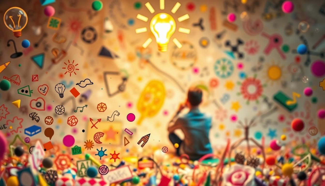 Tools like the word association chain show this effect. For example, the word “light” can lead to 84 new ideas, showing hidden connections. The X-IDEA method splits creativity into creative thinking techniques: Ideation and Development. It focuses on generating lots of ideas first, then refining them.