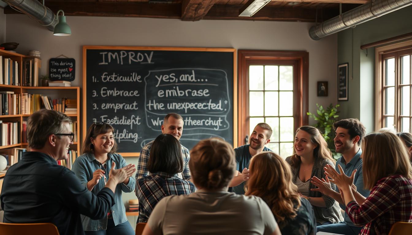 At the heart of improv basics lies the “Yes, And” principle. This rule is key to collaborative storytelling. When two performers create a scene, every contribution must be accepted and expanded.