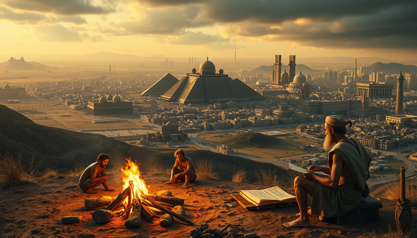 These stories turned abstract ideas into shared truths. The Cognitive Revolution 70,000 years ago helped humans work together through myths. Societies like Mesopotamia used stories to enforce laws, as seen in the Code of Hammurabi.